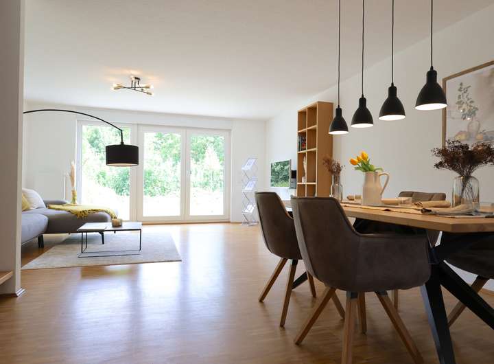 Die Reihenhäuser werden nach dem KfW40 Energieeffizienzstandard erbaut und unterliegen daher strengen Voraussetzungen. Die Firma Weisenburger übergibt Ihnen das Haus bezugsfertig. Vorab können Sie im Bemusterungszentrum der Firma Weisenburger selbst auswählen, ob Sie die Standard Ausstattung wählen möchten oder sich für eine andere Kategorie entscheiden möchten (gegen Aufpreis). Die Häuser verfügen jeweils über eine eigene Photovoltaik-Anlage. Geheizt wird über eine effiziente Luft-Wasser-Wärmepumpe und alle Wohnräume verfügen über eine Fußbodenheizung. Weitere Informationen zur Ausstattung können Sie der Baubeschreibung entnehmen