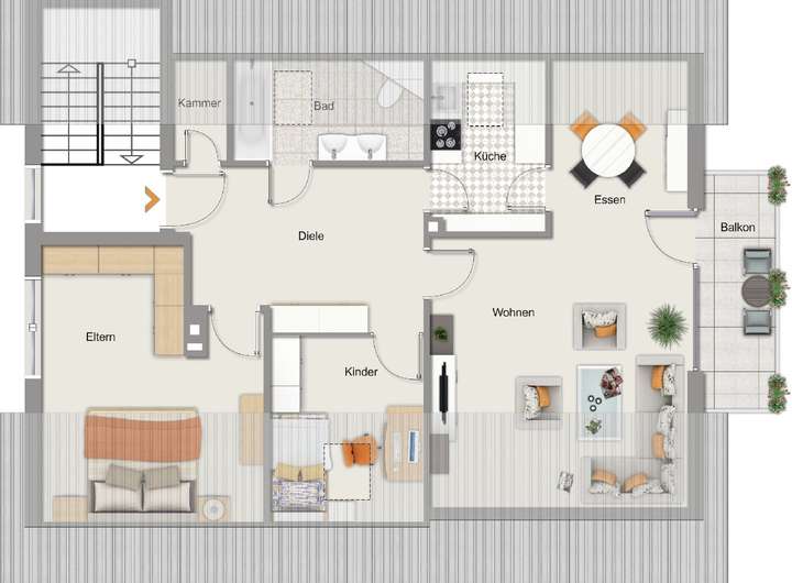 •Alle Wohnungen verfügen über einen Balkon, Erdgeschosswohnung mit Terrasse und Garten