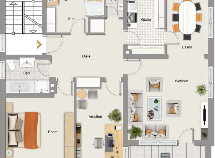 Das Haus verteilt sich auf drei helle Etagen, die durch ihre Rundumbelichtung ein freundliches Wohnambiente schaffen. Jede Wohnung verfügt über einen Balkon, die Erdgeschosswohnung zusätzlich über eine sonnige Terrasse mit angrenzender Gartenfläche. Auch den Bewohnern der Obergeschosse stehen Gartenanteile zur Verfügung.