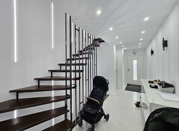Die Elektrotechnik ist auf dem neuesten Stand mit dem KNX System ausgerüstet, die Fenster sind ebenfalls auf dem neusten Stand mit einer Dreifachverglasung, elektrischen Rollläden, zusätzlich sind alle Fenster mit Fliegengitter ausgestattet. Auf allen Etagen bietet die Fußbodenheizung einen extra Komfort. Die Waschmaschine und den Trockner befinden sich im Untergeschoss im Gästebadezimmer. Es gibt einen weiteren Eingang im Untergeschoss, den man auch als Eingang oder Ausgang nutzen kann.