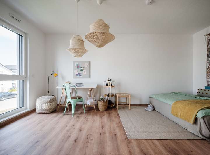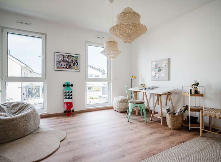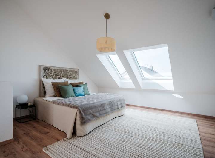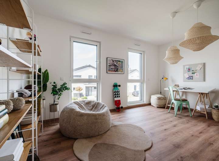 Die hochwertigen Fenster mit 3-fach-Verglasung bieten exzellenten Schall- und Wärmeschutz. So bleibt es im Winter warm und im Sommer angenehm kühl – für ein perfektes Raumklima und einen geringen Energieverbrauch.