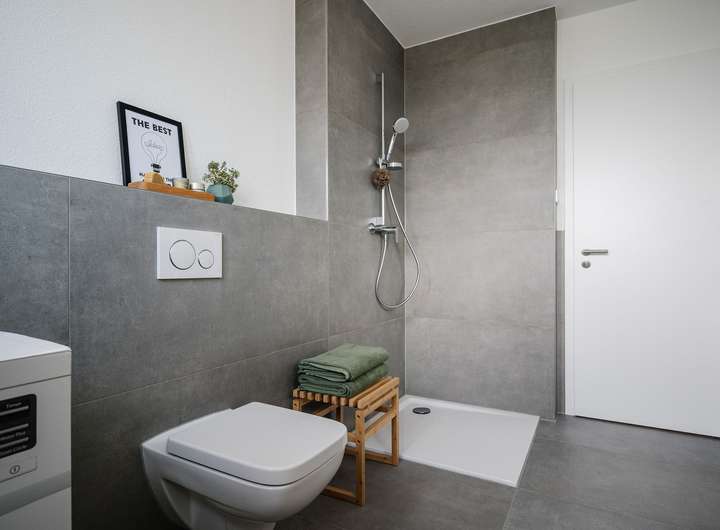 Ein modernes Lüftungssystem sorgt automatisch für frische Luft im gesamten Wohnraum und reguliert die Luftfeuchtigkeit, um ein gesundes Raumklima zu gewährleisten und Feuchtigkeitsschäden zu vermeiden.