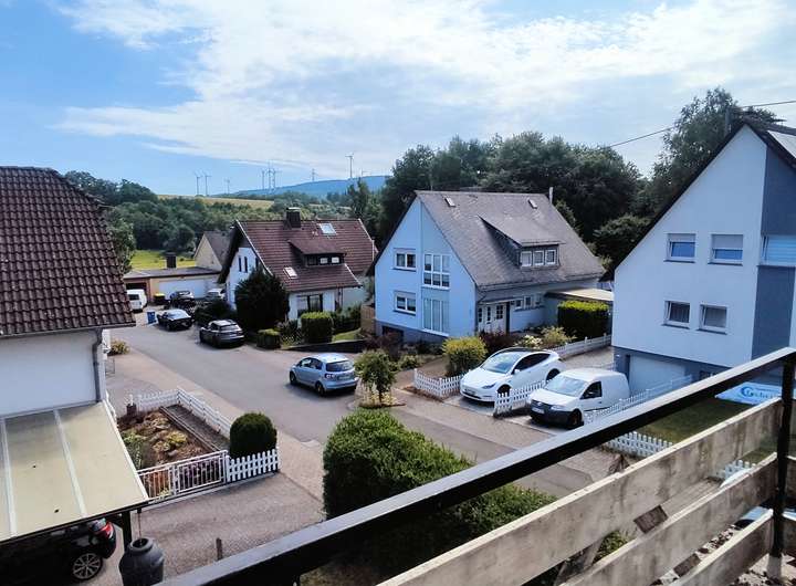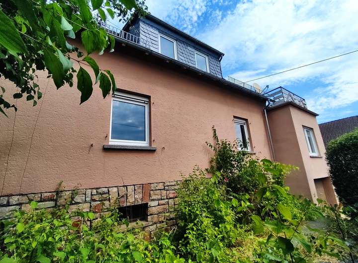 Im Dachgeschoss stehen 3ZKB und eine überdachte Dach-Terrasse mit herrlichem Weitblick und Balkon zur Verfügung. Diese Wohnung hat eine Abschlußtür und könnte vermietet werden.