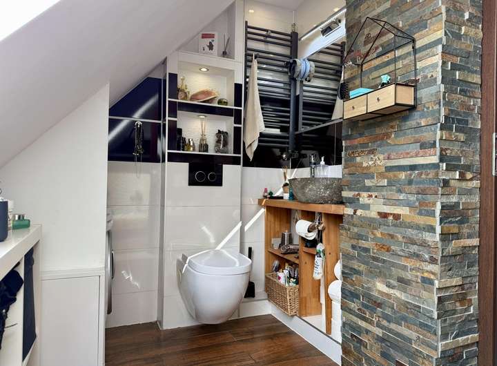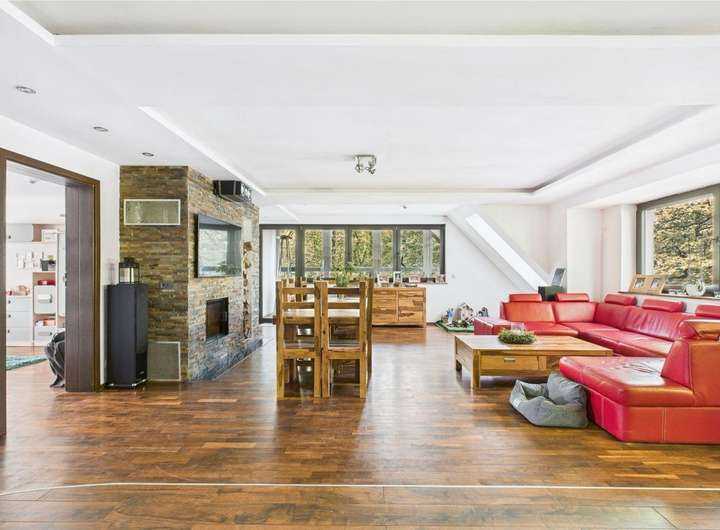 Die Immobilie bietet viel Platz und viele Möglichkeiten. Großzügig geschnittene helle Räume sowie offene, moderne Einbauküchen lassen keine Wünsche offen. Die Wohnzimmer bieten ausreichend Platz für Essbereiche mit einem Panorama-Blick in die Natur.