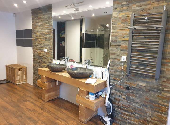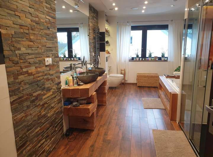 - Böden: Echtholzparkett Nussbaum / hochwertige Fliesen