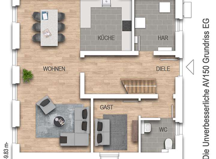 Gebühren für Grunderwerb und Notarkosten, Baunebenkosten, restlicher Innenausbau und Sonderwünsche wie zum Teil abgebildet.