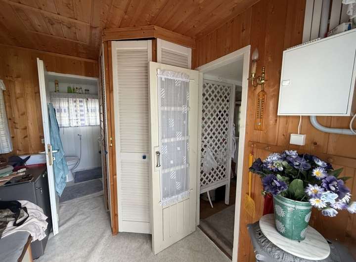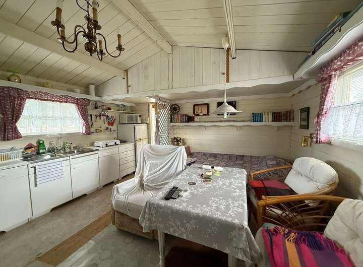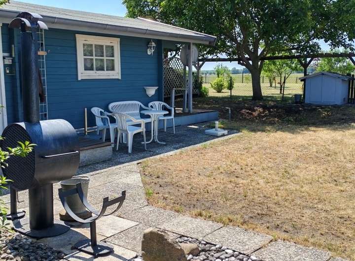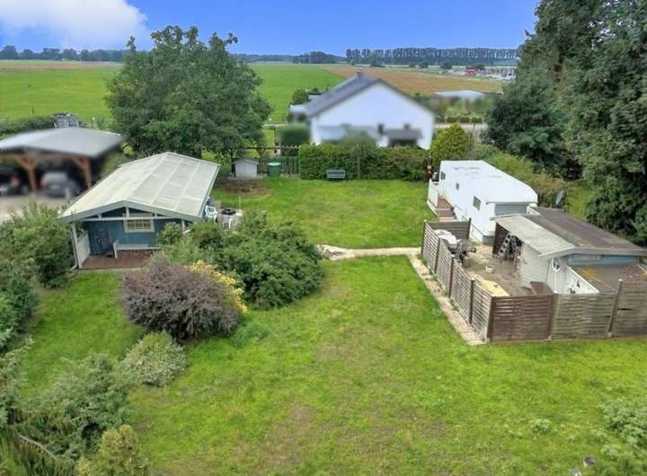 Bisher wird das Grundstück als Wochenendgrundstück genutzt und ist mit einem 24 m² Blockbohlenhaus und einem Gartenschuppen bebaut. Zusätzlich steht ein 7,70 m Langer Wohnwagen (Knaus Azur 770) auf dem Grundstück, welchen der zukünftige Erwerber mit erwirbt.