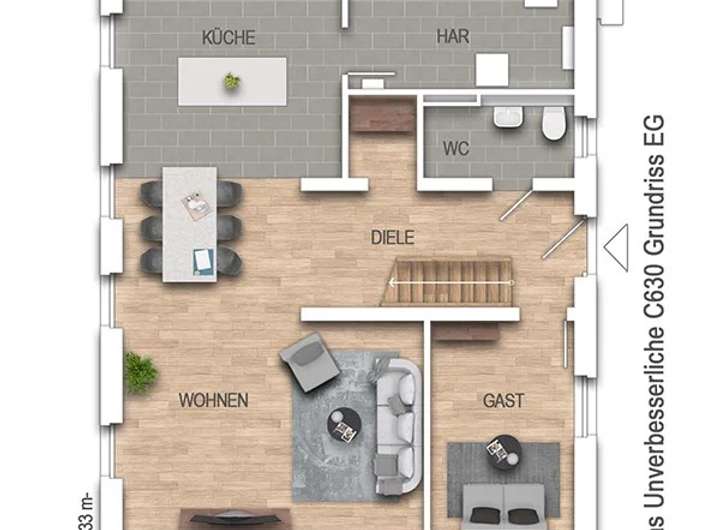 Gebühren für Grunderwerb und Notarkosten, Baunebenkosten, restlicher Innenausbau und Sonderwünsche wie zum Teil abgebildet.