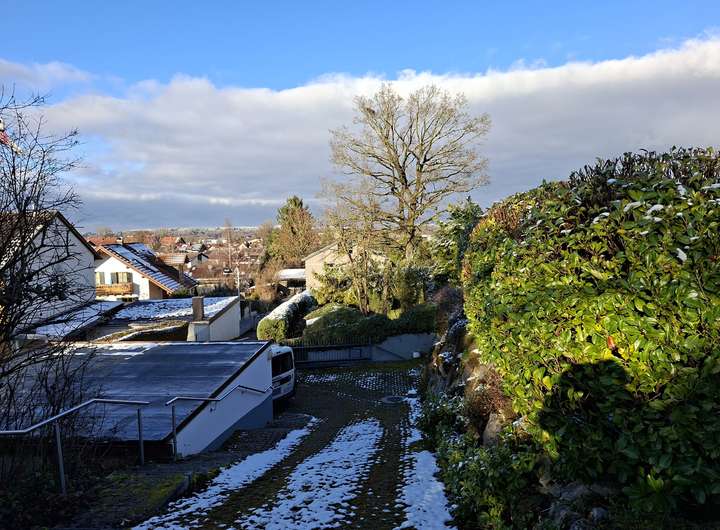 Auf den 1619 Quadratmetern des dazugehörigen Grundstücks können Sie entspannen und See-und Bergblick geniessen. Ihnen stehen außerdem eine Einbauküche sowie mehrere grosse Kellerräume: einer davon als Wohn-/Arbeitsbereich, einer z.B. als Tischtennisraum (erprobt), einer als Werkraum, einer für evtl. Sauna zur Verfügung. Die Photovoltaikanlage wird spätestens im Frühjahr 2026 montiert.