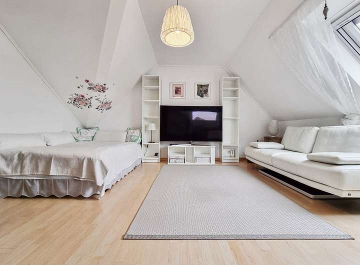 Das vollständig ausgebaute Dachgeschoss bietet ein besonderes Plus. Auf dieser Ebene stehen drei vielseitig nutzbare Räume zur Verfügung. Ein großzügiges Zimmer kann als Schlafzimmer, Büro, Hobbyraum, Ankleide oder Gästezimmer genutzt werden. Direkt angrenzend liegt ein weiteres Gäste-WC. Ein weiteres Zimmer dient derzeit als Ankleidezimmer; von hier aus gelangen Sie zudem in den Spitzboden. Alle drei Dachfenster wurden 2019 erneuert und mit elektrischen Rollläden sowie Fliegengittern ausgestattet, was zusätzlichen Komfort bietet.