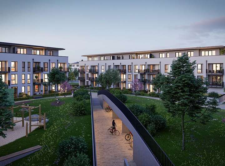 Modern, effizient, zukunftssicher: Die KfW-55-Bauweise, eine hauseigene Photovoltaikanlage, Glasfaseranschluss und großzügige Tiefgaragenstellplätze bieten ein stimmiges, nachhaltiges Gesamtkonzept.