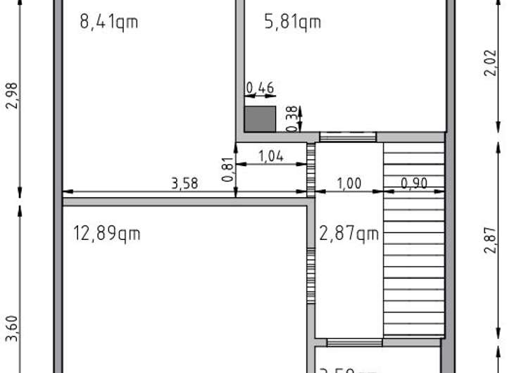 Die obere Etage hat, wie schon gesagt, drei unterschiedlich große Schlafräume und ein Bad mit Dusche, WC und Fenster.
