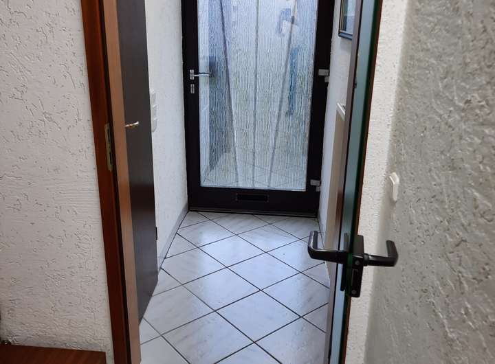 Hervorzuheben ist, das die Terrassen türe von aussen abschließbar/zu öffnen ist. Sie können somit das Haus auch von hinten begehen und verlassen. Der vordere Eingang wurde deshalb in der Vergangenheit kaum genutzt.