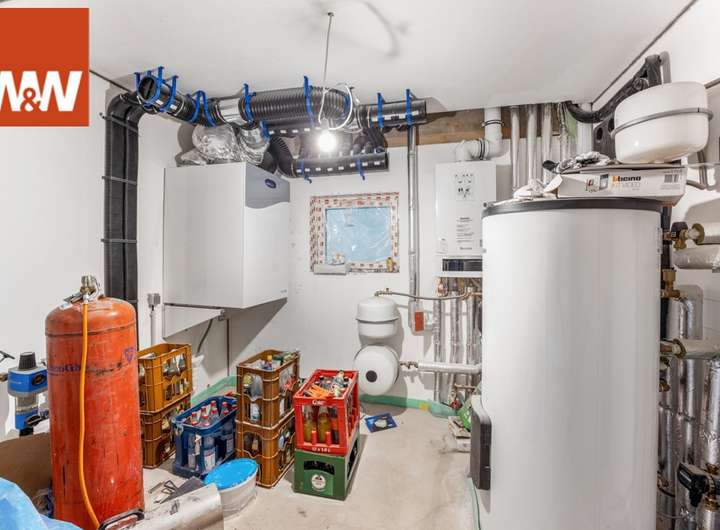 Die Gasbrennwertheizung wird mit einem Gastank im Außenbereich betrieben und die Solarzellen auf dem Dach sorgen für die Warmwasseraufbereitung/Heizungsunterstützung. Eine kontrollierte Be- und Entlüftungsanlage mit Wärmerückgewinnung sorgt für ein sehr gutes Raumklima. Das Erdgeschoss wurde massiv errichtet (Beton).