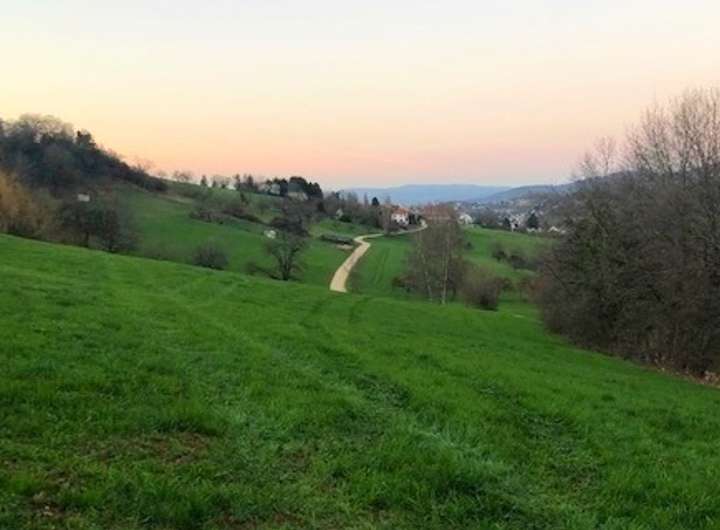 Zum Baugrundstück gehört eine, im Norden direkt angrenzende, ca. 5.888 m² große landwirtschaftliche Fläche (Wiese). Diese Fläche garantiert einen unverbaubaren Fernblick durch das Hexental bis nach Freiburg und in den Schwarzwald.