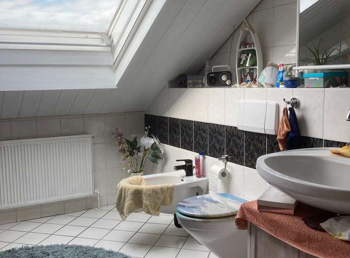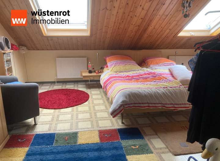 Im Obergeschoss befinden sich 3 Zimmer und ein Wannenbad.