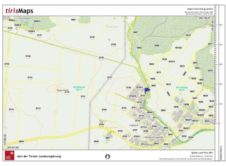 Dieses Grundstück zeichnet sich durch die tolle Lage und den guten Schnitt aus. Das Grundstück liegt im Ortsteil Habach, entlang dem "Habach", auf der Sonnenseite von Münster. Nach Rücksprache mit der Gemeinde ist eine Nutzflächendichte bis zu 0,4 möglich. Dies bedeutet das auch genügend Wohnfläche zur Errichtung eines Doppelhauses, aber auch eines großen Einfamilienhauses gegeben wäre. Dies natürlich bei Einhaltung der Tiroler Bauordnung und der entsprechenden Abstände zu den Nachbarn.