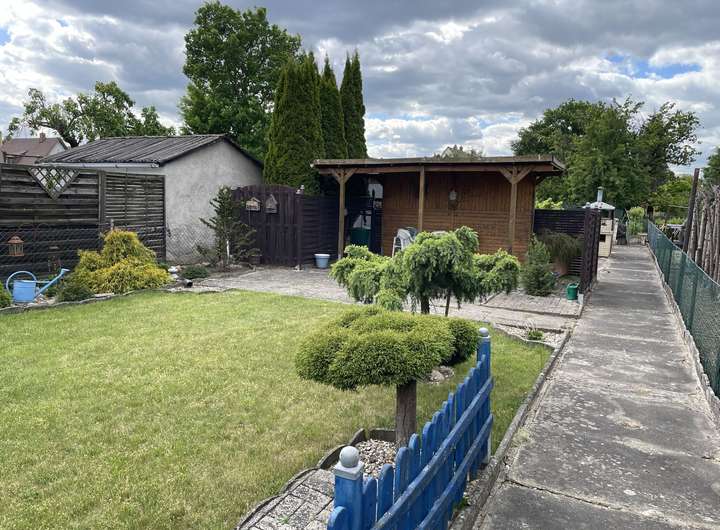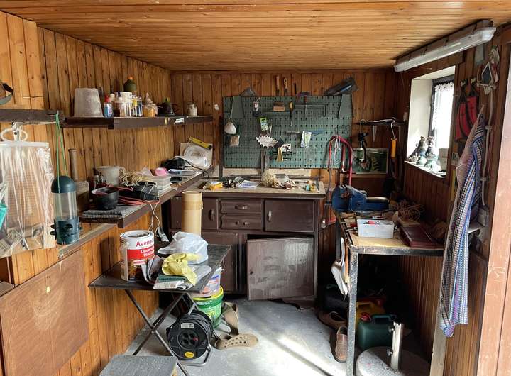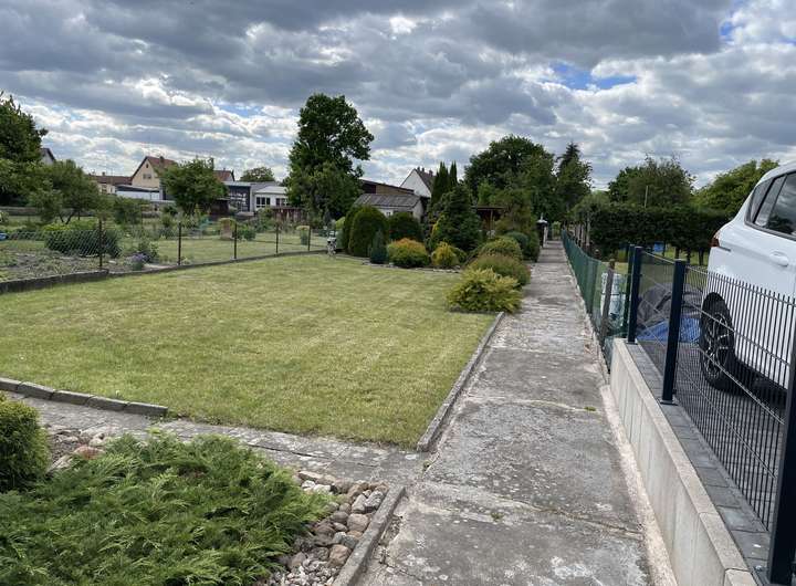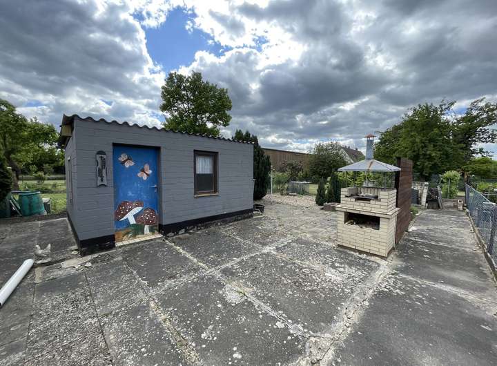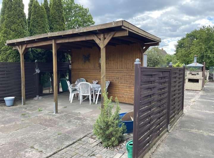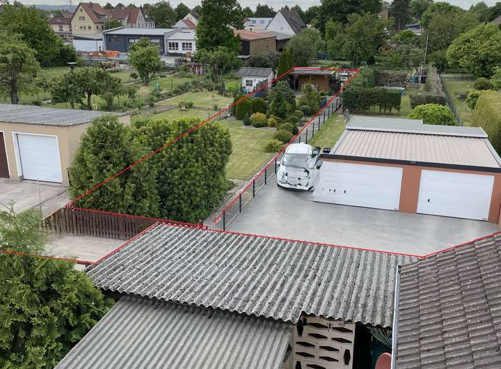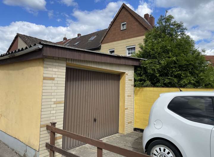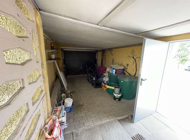 eine Garage, von hier aus gelangt man in den großen Garten, der sich hinter dem Haus befindet.