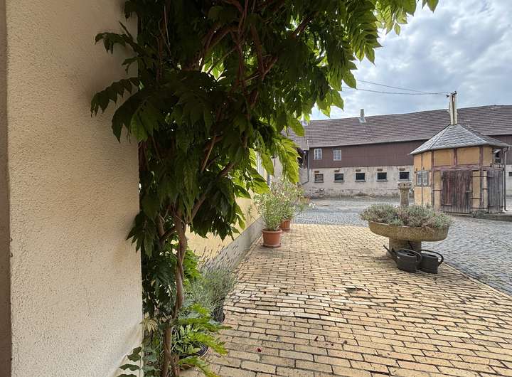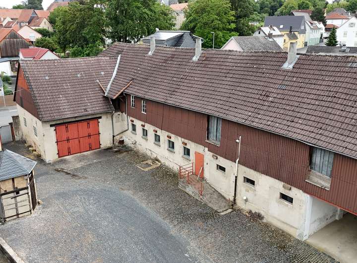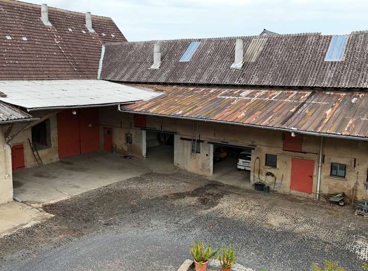 Die große Hoffläche ist gepflastert und bietet zahlreiche Außenstellplätze sowie mehrere Garagen. Ein Gewölbekeller, ehemalige Stallungen, eine Werkstatt, großzügige Lagerflächen für beispielsweise Heu und Stroh sowie weitere Nebengebäude runden das Angebot ab und machen den Hof auch für landwirtschaftliche oder gewerbliche Nutzung interessant.