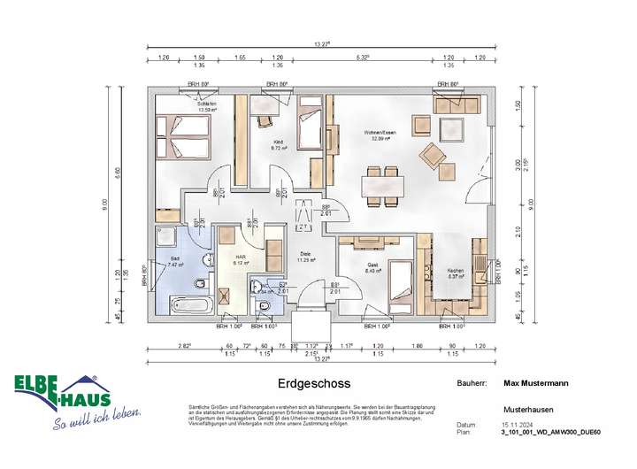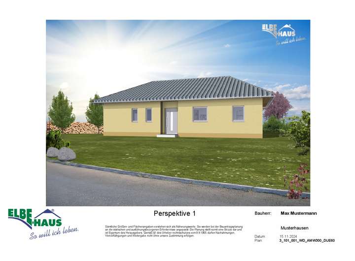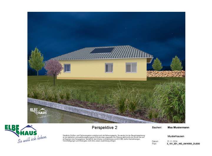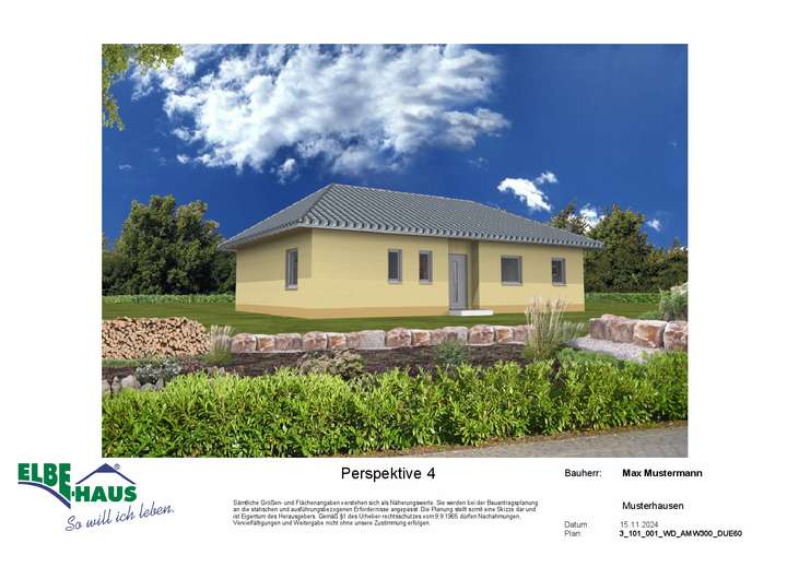 Dieses innovative Elbe-Haus® wird in massiver Bauweise von qualifiziertem Fachpersonal errichtet. Wir planen und projektieren nach Ihren Vorstellungen und Wünschen und somit ist wirklich jedes Haus einzigartig. Beachten Sie bitte, dass das abgebildete Haus lediglich ein Bebauungsbeispiel ist. Das Grundstück kann unter Berücksichtigung der örtlichen Bauvorschriften mit Ihrem Wunschhaus von Elbe-Haus® errichtet werden.