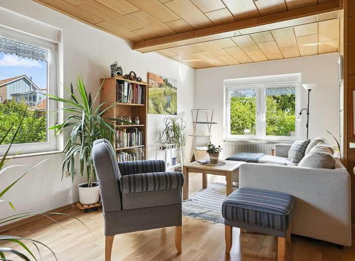 Das Erdgeschoss: Aktuell von der Eigentümerin selbst bewohnt, überzeugt dieser Bereich mit einem offenen Wohnbereich, angrenzendem Schlafzimmer, einer modernen Küche (Einbauküche von 2018), einem Duschbad sowie einem separaten Badezimmer. Ein besonderes Highlight: der direkte Zugang in den weitläufigen Garten. Natur pur mit alten Büschen, Sträuchern und kleinen Rückzugsorten.