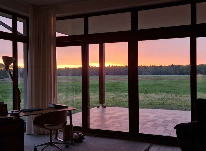 Jeden Morgen begrüßt die Bewohner ein weiter Himmel, der mit seinem atemberaubenden - und durch die verschiedenen Jahreszeiten stetig wechselnden Licht- und Farbenspiel -bezaubert. Jeder der hier Wohnenden wird stets zu einzigartigen Naturbeobachtungen eingeladen: Wie wäre es, sich von Hirsch, Reh, Fuchs und Kranich regelmäßig begrüßen zu lassen?