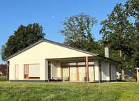 Das attraktiv gestaltete Wohngebäude in modernem Bungalowstil wird als Einfamilienhaus genutzt. Die Immobilie befindet sich in einer ruhigen Ortslage. Die Bewohner des Hauses leben inmitten einer offenen Naturlandschaft. Das garantiert täglich traumhafte Blicke in die angrenzende Heide und auf umliegende Wälder.