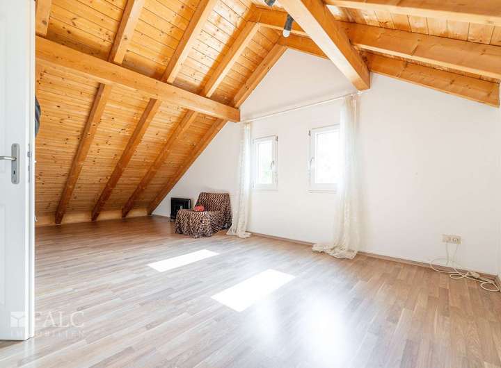 Im Dachgeschoss ist ein schönes großes Zimmer, um das sich Ihre Kinder sicherlich streiten werden.