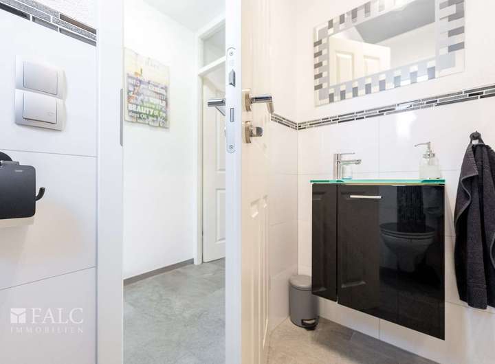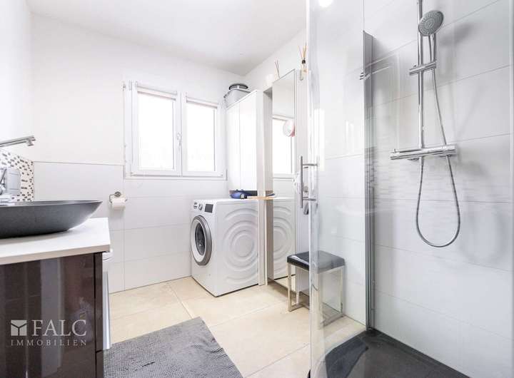 Es gibt ein Bad mit Dusche und ein separates Gäste-WC.