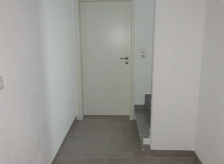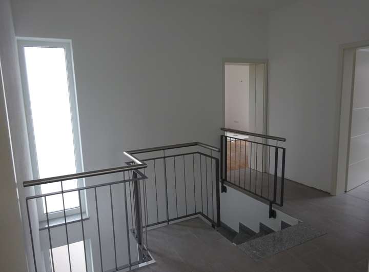 Das Haus wurde mit 3-fach verglasten Fenstern und Fußbodenheizung ausgestattet. Alle Fenster verfügen über elektrische Rollläden. Das Badezimmer im Obergeschoss ist mit Dusche, Wanne, WC und zwei Waschbecken ausgestattet. In den Wohnräumen wurde ein strapazierfähiger Eiche-Vinyl-Belag verlegt. Die Flure, Abstellräume und Badezimmer sind hellgrau gefliest. Die Treppen und Fensterbänke wurden mit Granit belegt.