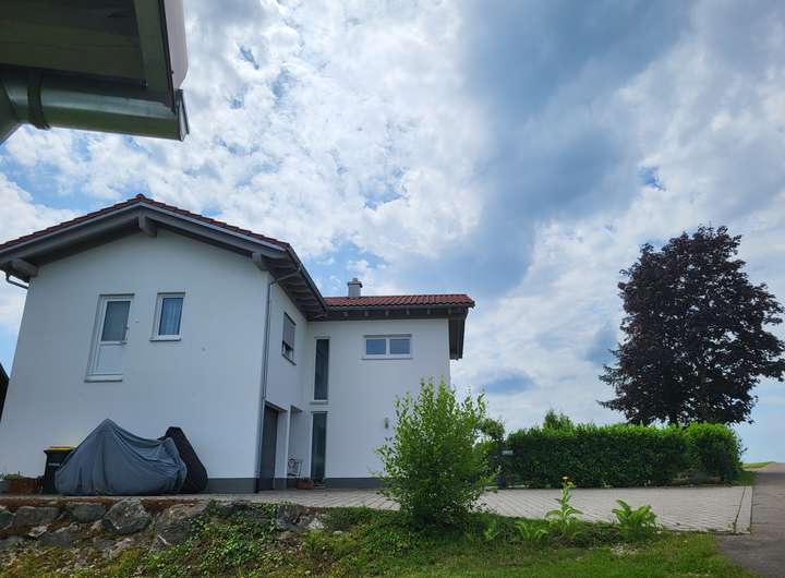 Das Einfamilienhaus befindet sich im Außenbereich zwischen Leutkirch und Kimratshofen.