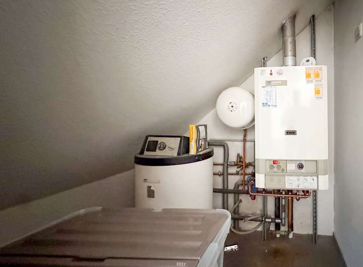 Gasheizung und Warmwasserboiler sind platzsparend unter dem Dach untergebracht - sicherlich Potential, beispielsweise über Solarthermie einmal nachzudenken.