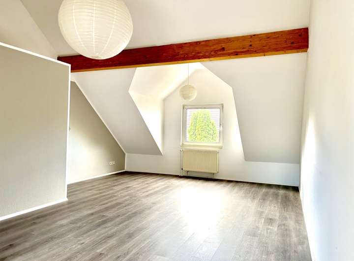 Im Obergeschoss erwarten Sie drei freundliche Schlafzimmer sowie ein Badezimmer mit Tageslicht und hellen Fliesen. Die harmonische Aufteilung bietet Platz für Ihre Gestaltungsideen und Unterbringung Ihres persönlichen Bedarfs. Das geräumige Dachstudio ist vielseitig nutzbar - lassen Sie es einfach einmal auf Sie wirken.