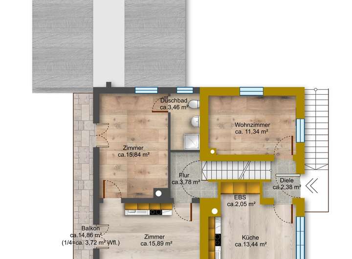 Wohnung 2: OG/DG ca. 79,65 m²