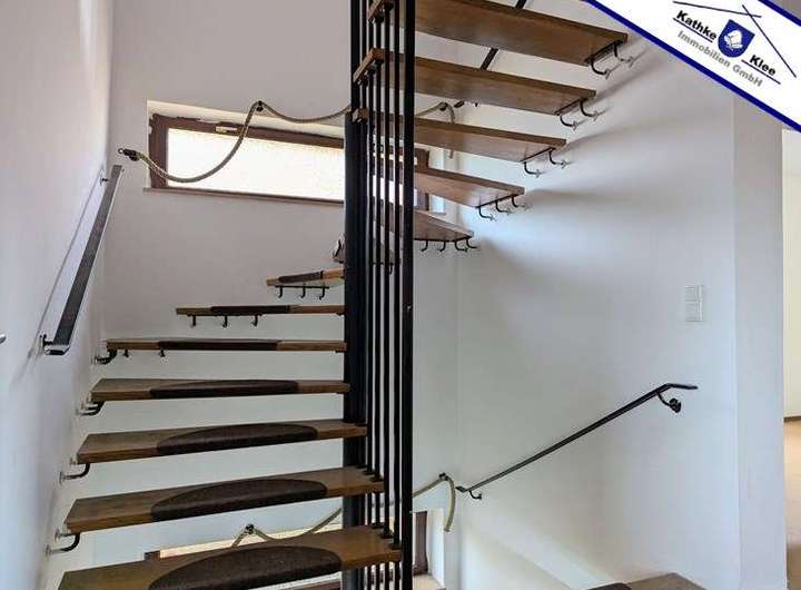Die Doppelhaushälfte erstreckt sich über vier Wohnebenen, die durch eine zentrale Wendeltreppe miteinander verbunden sind. Der wohnlich ausgebaute Souterrainbereich mit separatem Zugang, bietet zudem vielseitige Nutzungsmöglichkeiten, etwa als Einliegerwohnung, Arbeits-/ Gästebereich oder Jugendwohnung.