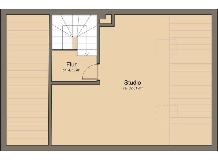 • Kleiner Flur mit Zugang zu einem großzügigen Studio – ideal als Büro, Hobbyraum, Spielzimmer oder Elternbereich nutzbar.