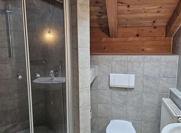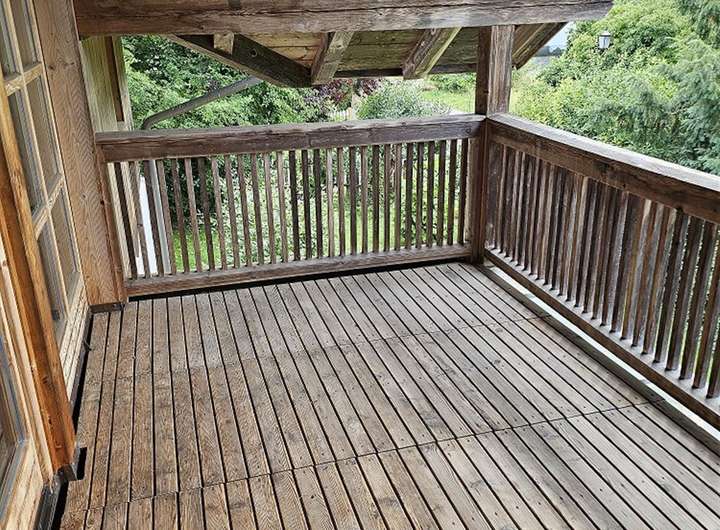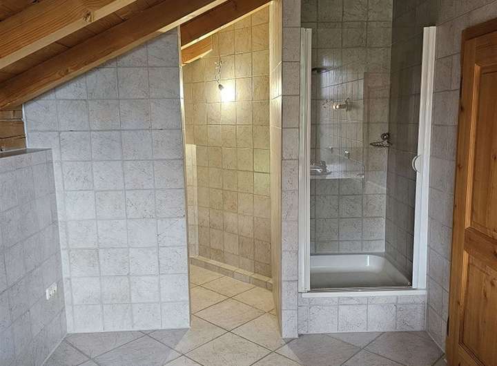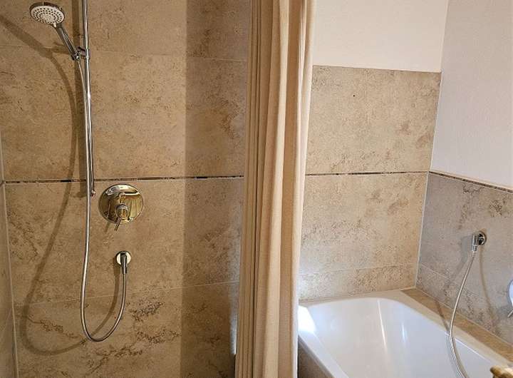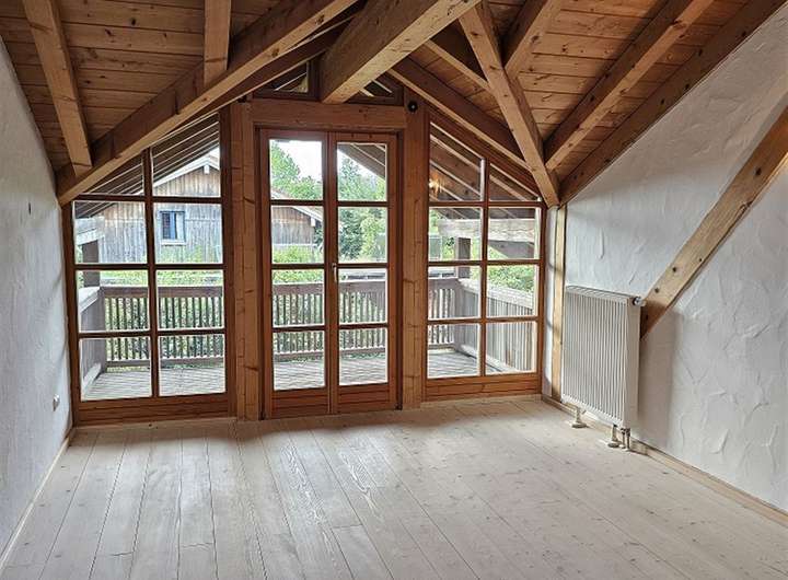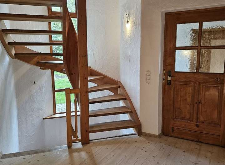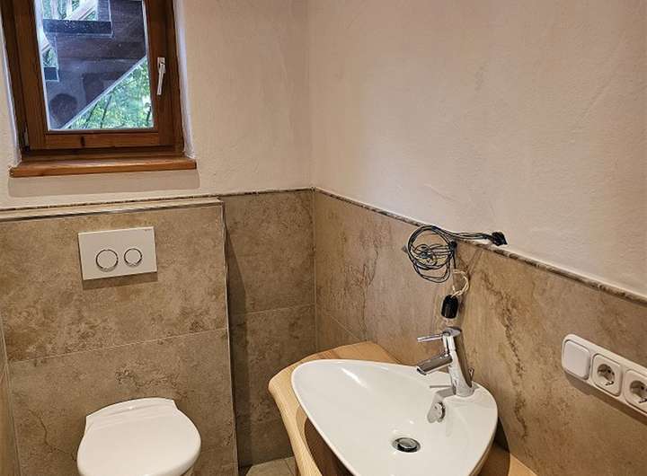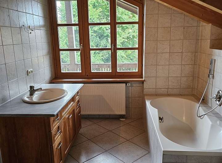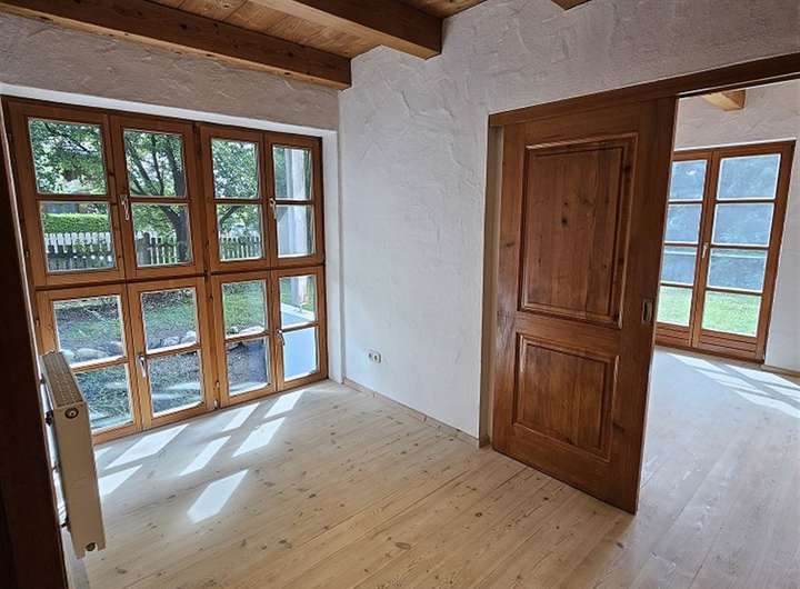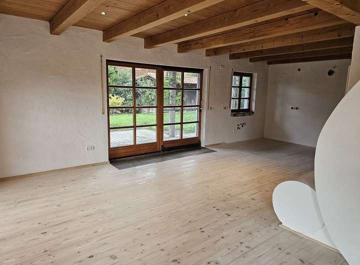 - Böden: Landhausdiele (Tannenholz), Fliesen