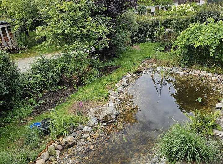 Über die massive Holztreppe gelangt man in das OG mit einem Schlafzimmer und einem weiteren Zimmer (beide Zimmer mit Zugang zu Balkonen) sowie ein großes Bad. Des Weiteren befindet sich im OG ein Wohn-/Schlaf-/Esszimmer mit Küchenanschluss und Bad, welches durch eine Außentreppe als Einlie-gerwohnung genutzt werden kann. Das Anwesen ist voll unterkellert. Das EFH wird umrahmt von einem naturnahen Garten, der durch einen liebevoll angelegten Teich abgerundet wird. Das Haus überzeugt durch seine offene u. freundliche Raumaufteilung mit zahlreichen Möglichkeiten zur individuellen Ge-staltung.