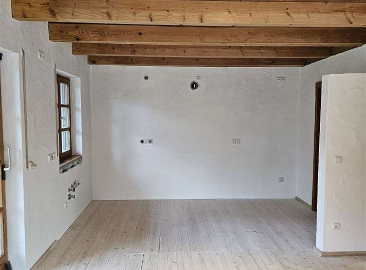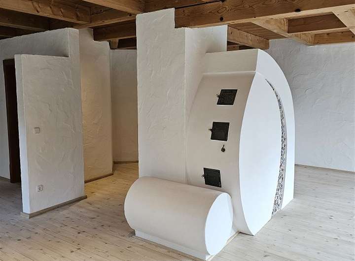 - Wohnzimmer m. Grundofen und offener Küche (ohne EBK)