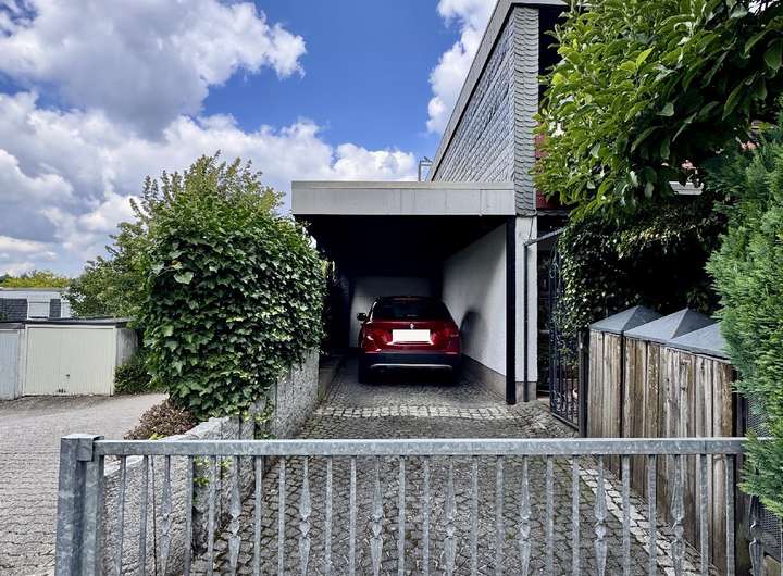 Garage direkt am Haus, mit zusätzlich vorgelagertem Carport sowie einem Schiebetor zur Einfahrt
