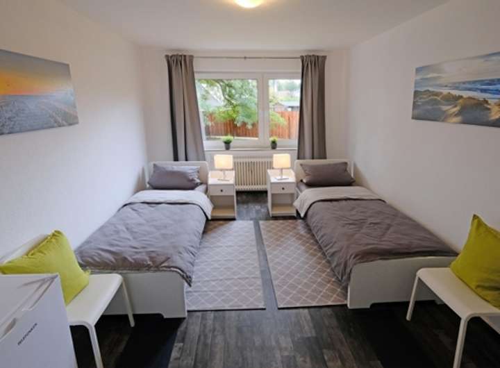Jedes Zimmer ist voll möbliert ( Bett, Nachtschrank, Schrank, Tisch und Stühle usw.)