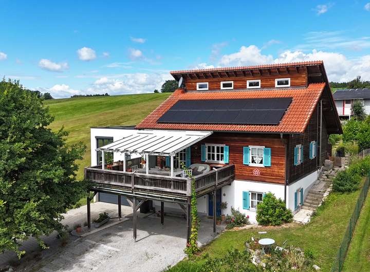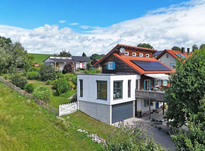 Am ruhigen Dorfrand von Oberviehbach, inmitten der malerischen niederbayerischen Hügellandschaft, liegt dieses außergewöhnliche Einfamilienhaus – ein echtes Zuhause für Familien, die das Besondere suchen. Auf über 1.100 m² Grund vereint das Anwesen klassische Bauweise mit moderner Architektur: Der gelungene Anbau mit Flachdach und großzügigen Fensterfronten setzt zeitgemäße Akzente und öffnet den Blick ins Grüne.