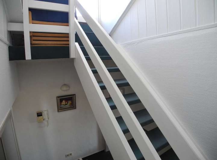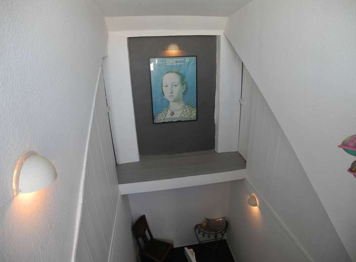 Treppenaufgang mit Flurbereich zur Dachterrasse und seitlichem Speicherstauraum.