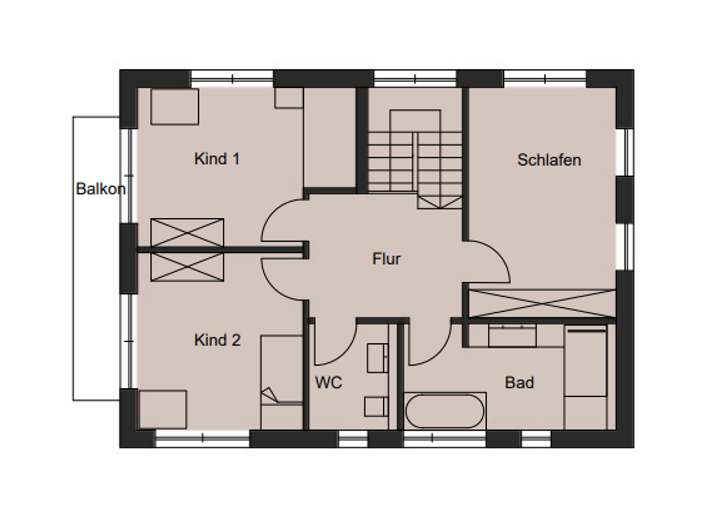 Im Obergeschoß liegen drei Schlafzimmer mit Masterbad.