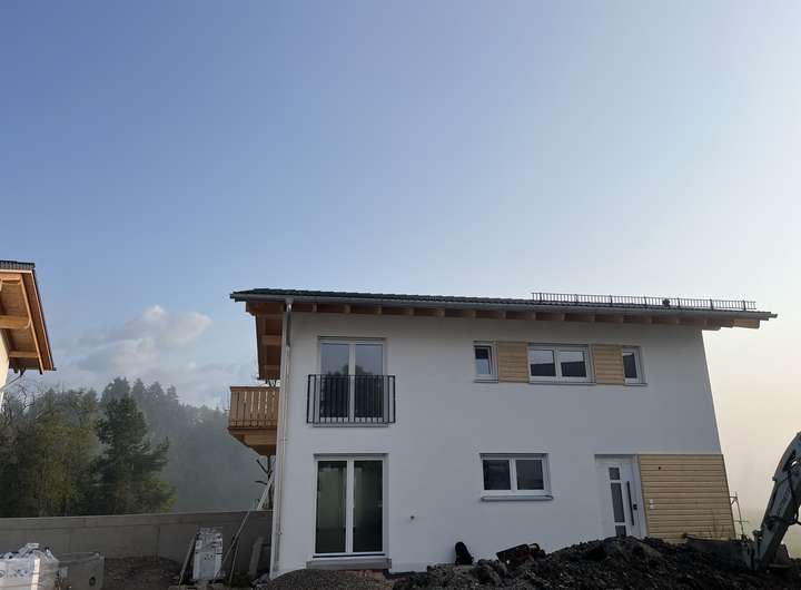 Das EFH liegt auf der Westseite unseres Grundstückes . Das Haus hat einen Südgarten und eine riesige Terrasse mit spektakulärem Blick in die Umgebung.