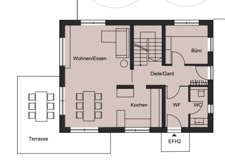 Im Erdgeschoß finden Sie Küche, Wohn- und Essbereich und ein Büro/Gästezimmer mit Gäste-WC