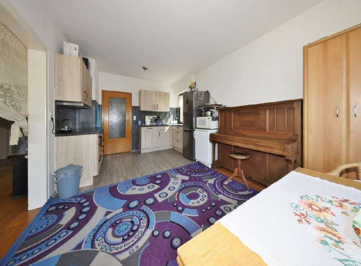 Dieses massiv gebaute Klinkerhaus im friesischen Neuenburg bietet eine seltene Gelegenheit für Investoren oder auch für Familien, die das Leben in einem gepflegten Dorf mit guter Infrastruktur zu schätzen wissen. Umgeben von Natur, liegt das 847m² große Grundstück ruhig und dennoch verkehrsgünstig in der Gemeinde Zetel ideal für alle, die Ruhe suchen, aber nicht auf gute Anbindungen verzichten möchten. Das Haus umfasst eine Gesamtwohn- und Nutzfläche von ca. 135,5 m² und ist derzeit in zwei Wohneinheiten aufgeteilt, die beide zuverlässig vermietet sind. Die jährlichen Bruttomieteinnahmen belaufen sich auf 11.520 Euro ein solides Fundament für Ihre Kapitalanlage. Die Erdgeschosswohnung empfängt mit einem durchdachten Grundriss: Herzstück ist das großzügige Wohn- und Esszimmer, das durch einen Durchbruch mit der einladenden Küche verbunden wurde. Ein Schlafzimmer, ein Badezimmer mit Dusch-Wannenbad sowie ein separates WC runden das Raumangebot ab. Die Dachgeschosswohnung verfügt über drei Zimmer, eine Küche und ein Badezimmer. Aufgrund der vorhandenen Dachschrägen strahlen die Räume eine gemütliche Wohnatmosphäre aus. Highlight ist der große Balkon am Wohnzimmer mit Blick in den Garten. Das Haus ist voll unterkellert neben der Heizungsanlage stehen Ihnen hier drei große Räume für Vorräte, Hobbys oder als Stauraum zur Verfügung. Im Außenbereich punktet das Anwesen mit einer Terrasse und einem großen Garten, der mit etwas Hingabe in eine grüne Wohlfühloase verwandelt werden kann. Zwei Garagen sowie ein angrenzender Geräteschuppen bieten zusätzlich praktischen Stauraum. Ein solides Zweifamilienhaus in idyllischer Dorflage mit interessanter Rendite ideal für Kapitalanleger oder für die spätere Eigennutzung. Der ländliche Charme von Neuenburg und die gute Vermietbarkeit machen dieses Haus zu einer attraktiven Investition.
