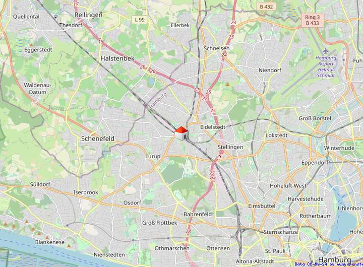 Das Grundstück befindet sich in einem verkehrsruhigem Wohngebiet am westlichen Rand von Hamburg-Eidelstedt. Die Umgebung ist geprägt von Einfamilien- und Doppelhäusern, einer aufgelockerten Bebauung und viel Grün.