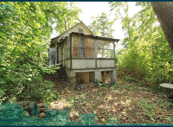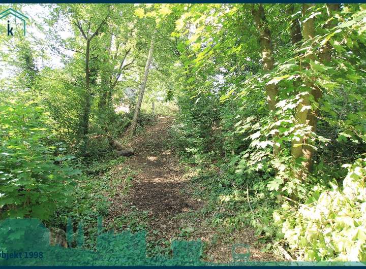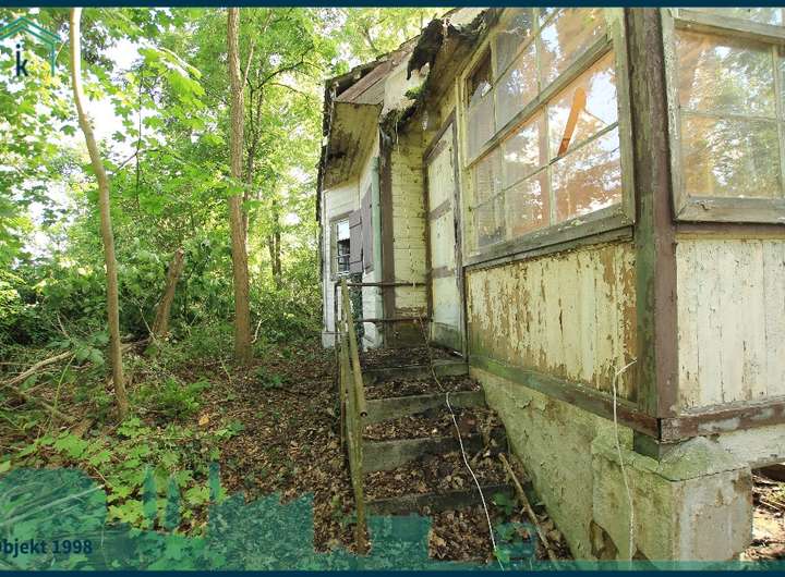 Auf dem Grundstück befindet sich viel Grün und ein altes Holzhaus (ca. 6 x 5 Meter) aus den 1930er Jahren, welches voll unterkellert ist. Das Niveau der Straße ist ca. 3 Meter über dem Niveau des Grundstückes.