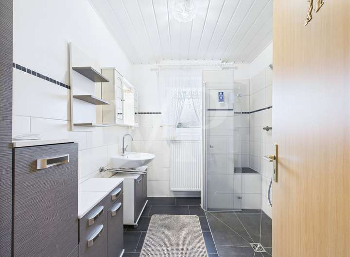 Das Haus bietet insgesamt sieben Zimmer, darunter vier gut geschnittene Schlafzimmer. Zwei Bäder sorgen für den nötigen Komfort im Alltag: Das Badezimmer im Erdgeschoss wurde im März 2025 bereits saniert, sodass Sie von modernen Ausstattungen profitieren können. Das zweite Badezimmer befindet sich im Obergeschoss und ist funktional ausgestattet.